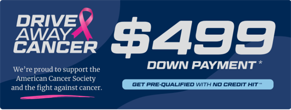 We have a great promotion going on right now! A $499 down payment gets you driving away in a quality used vehicle. We are donating to the American Cancer Society to support the fight against cancer. Call us TODAY for more details 859.745.5254