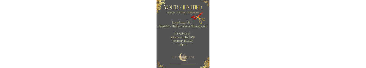 LunaLuxe Chamber Ribbon Cutting LunaLuxe Chamber Ribbon Cutting LunaLuxe Chamber Ribbon Cutting Set a Reminder Enter your email address below to receive a reminder message. Email address Select the amount of Days before the event -- Select Days Before Event -- 1 Day 2 Days 3 Days 1 Week Captcha Validation Please complete the Captcha Submit Date and Time Wednesday Feb 11, 2026 12:00 PM - 12:00 PM EST Wednesday, February 11 Noon Location 174 Pedro Way Winchester, KY Fees/Admission Free Contact Information LunaLuxe Set a Reminder Enter your email address below to receive a reminder message. Email address Select the amount of Days before the event -- Select Days Before Event -- 1 Day 2 Days 3 Days 1 Week Captcha Validation Please complete the Captcha Submit Share × Print Email Add to Calendar Facebook Twitter LinkedIn Tell a Friend × Select Calendar Type × Google Yahoo iCal (Outlook, Apple, or other)